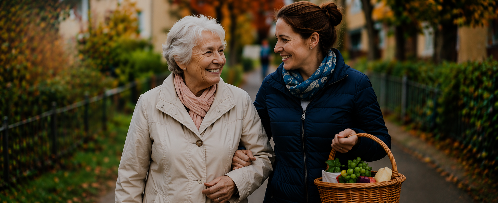 Ob Begleitung, kleine Besorgungen oder Hilfe mit Formularen – wir bringen passende Unterstützung in den Alltag.